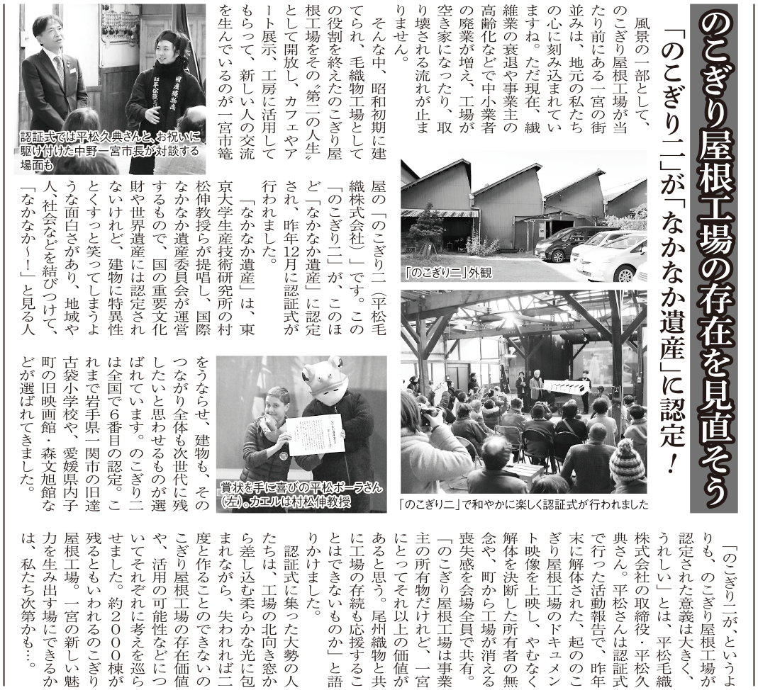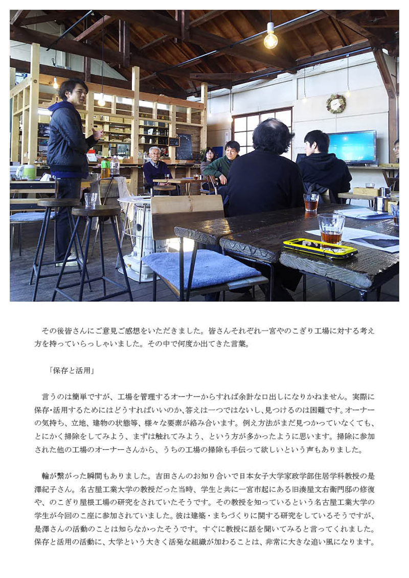 一宮市長がのこぎり二にいらっしゃいました。 ノコギリ屋根工場の可能性についてお話ししました。 |