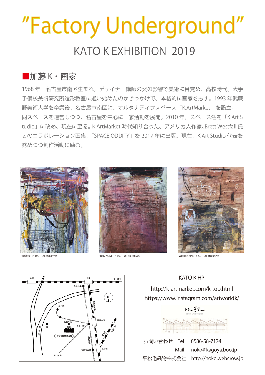2019.3.23 / 3.26 - 4.21"Factory Underground" Kato K Exhibition 2019 |